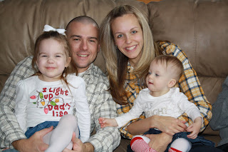 On January 9th we celebrated Brooklyn's 1st Birthday by throwing her a bumble bee party!! The theme was bumble bees & letter B's along with polka dots. Most people probably think I carry out the whole "theme" concept a little much, but I have so much fun putting together all of the decorations and little details that I challenge myself to be creative (and its so much more cost affective). We were super excited, because it was the first party where we could invite all of our family & friends in Illinois! We had the party at our house and served S&T home-aide pizzas for lunch along with some delicious dips my mother-in law made. With good company, The Bee Movie playing on DVD, and our house packed tight we had an absolute blast.
